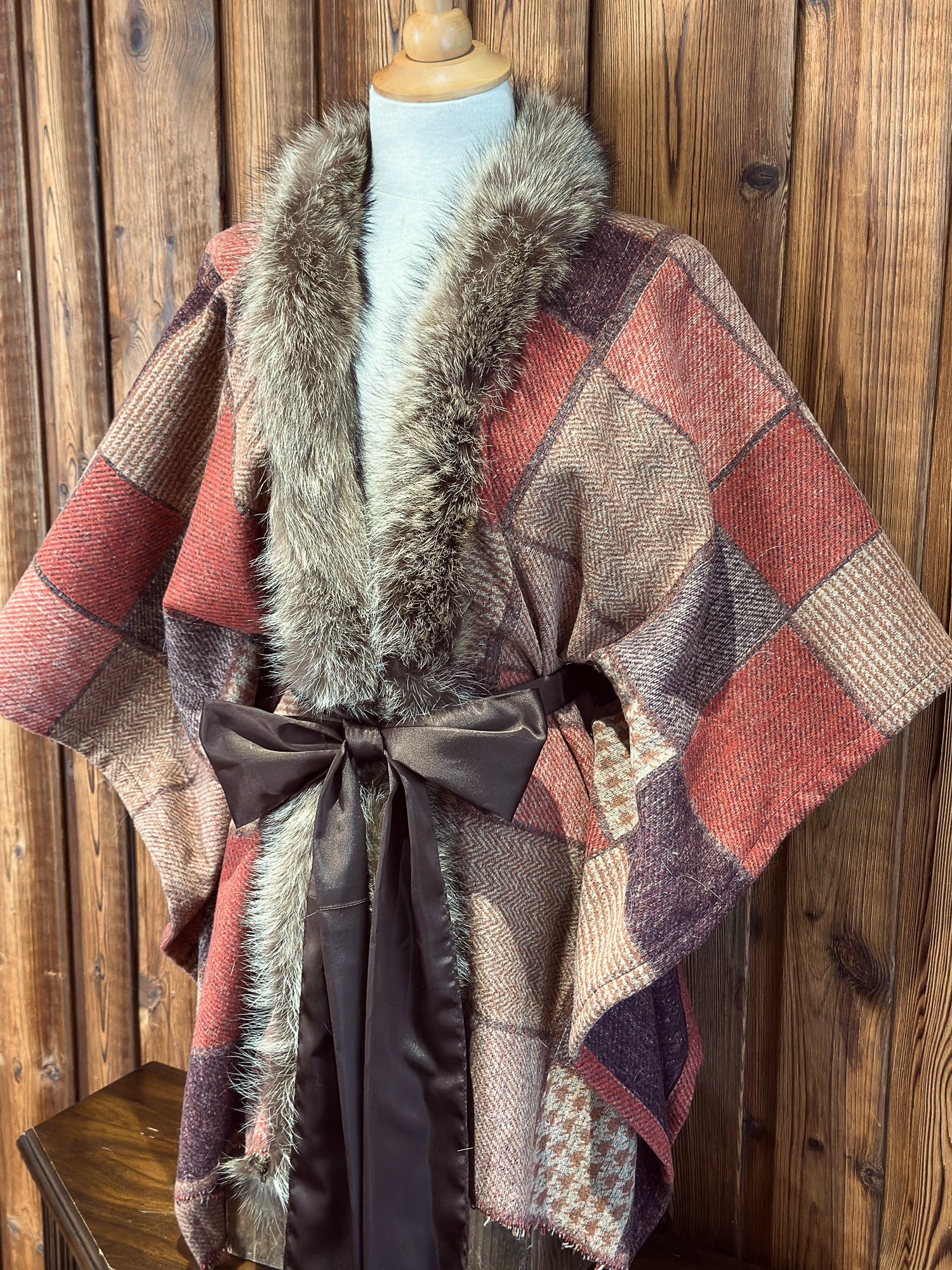 Foulard Taupe et Rose avec fourrure recyclée - Renard