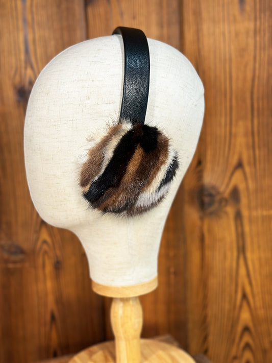 Cache-oreilles en fourrure recyclée, chat sauvage brun
