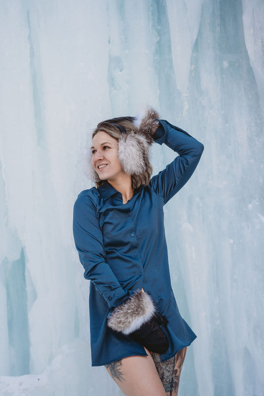 Cache-oreilles en fourrure recyclée, Renard arctique