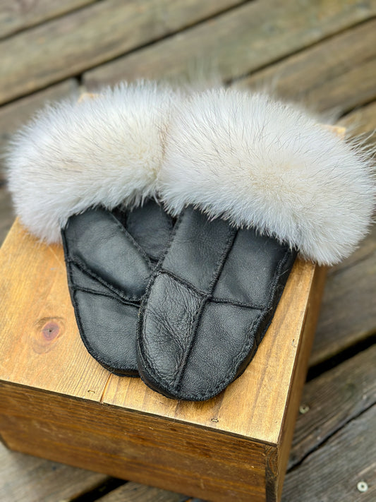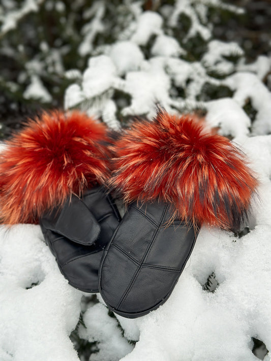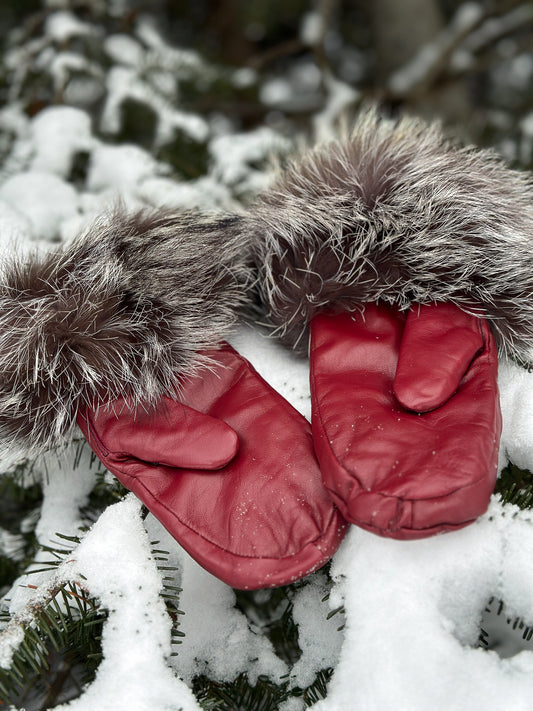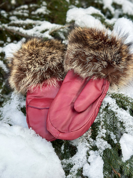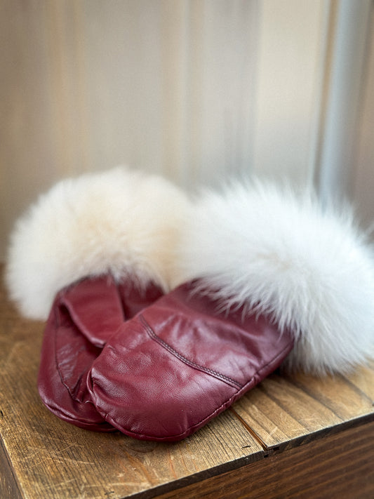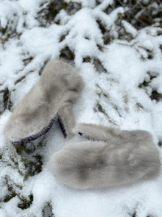 Mitaines en suède mauve recouverte de fourrure recyclée