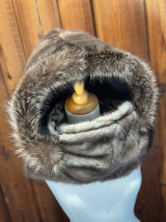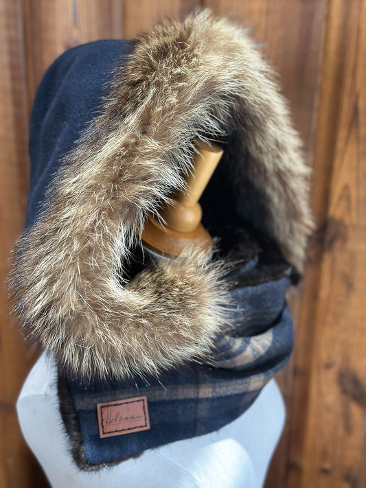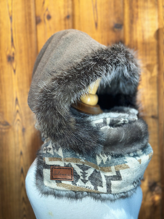 Foulard à capuchon réversible et amovible Taupe et Bleu