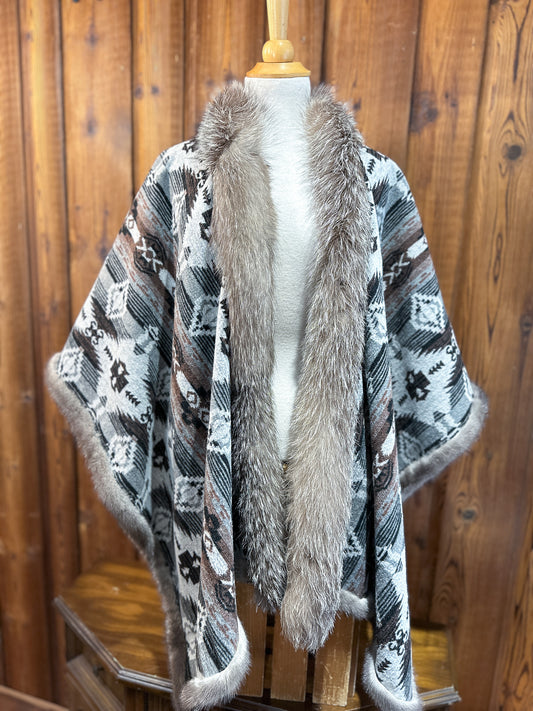 Châle-couverture avec fourrure recyclée