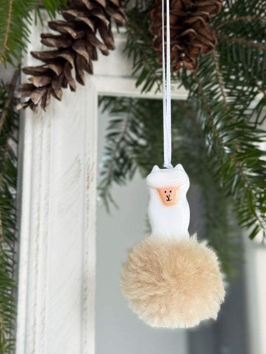 Ornement Chat Roux en verre fusion et pompon