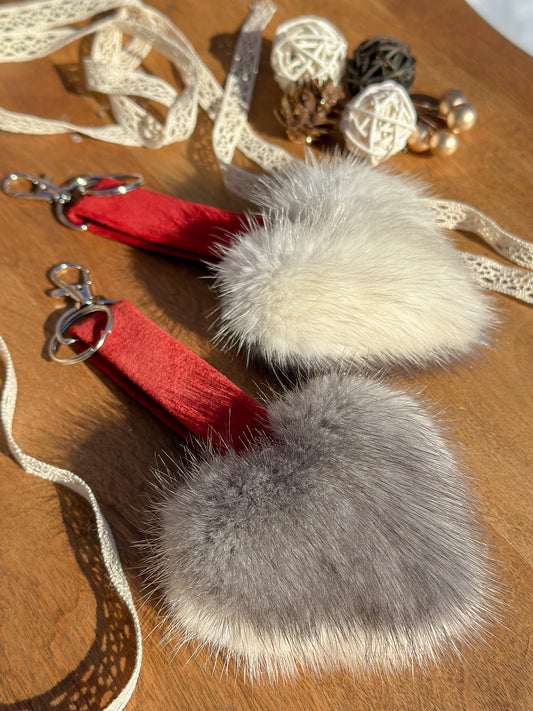 Porte clés en fourrure recyclée « p’tit coeur » Réversible