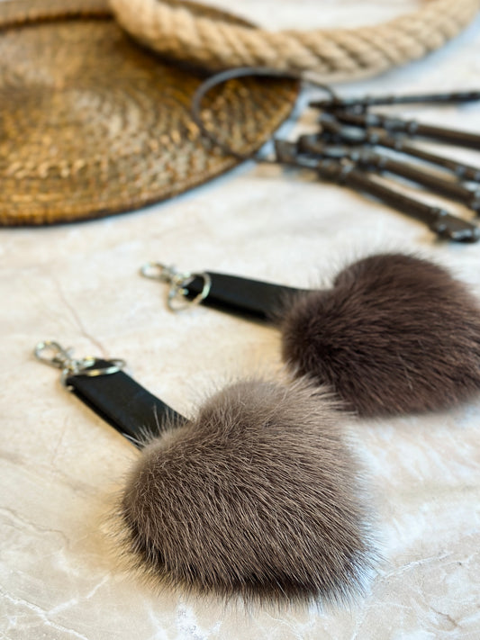 Comme porte-clés ou ornement sur votre sac à main. Cet accessoires ajoutera une touche de douceur, en restant chique et subtiles. Fabriqués de fourrures et cuirs recyclés.