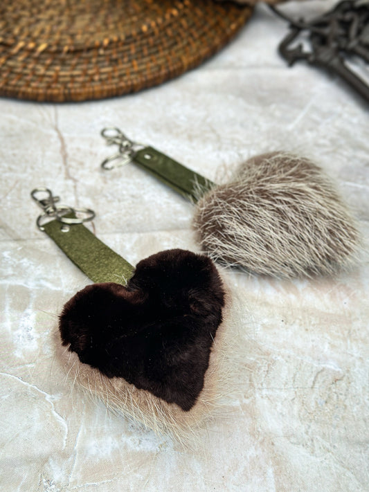 Porte clés en fourrure recyclée « p’tit coeur »