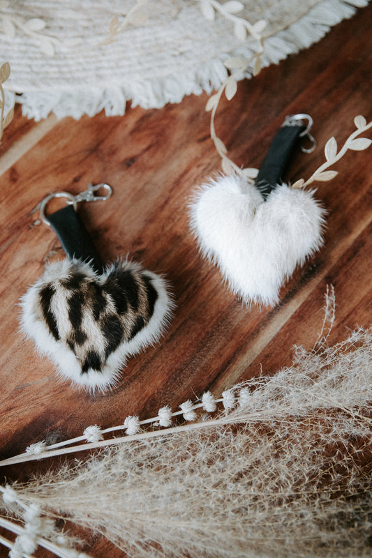Porte clés en fourrure recyclée « p’tit coeur » Réversible