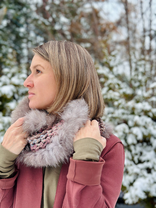 Foulard Vert et Noir avec fourrure recyclée - Renard