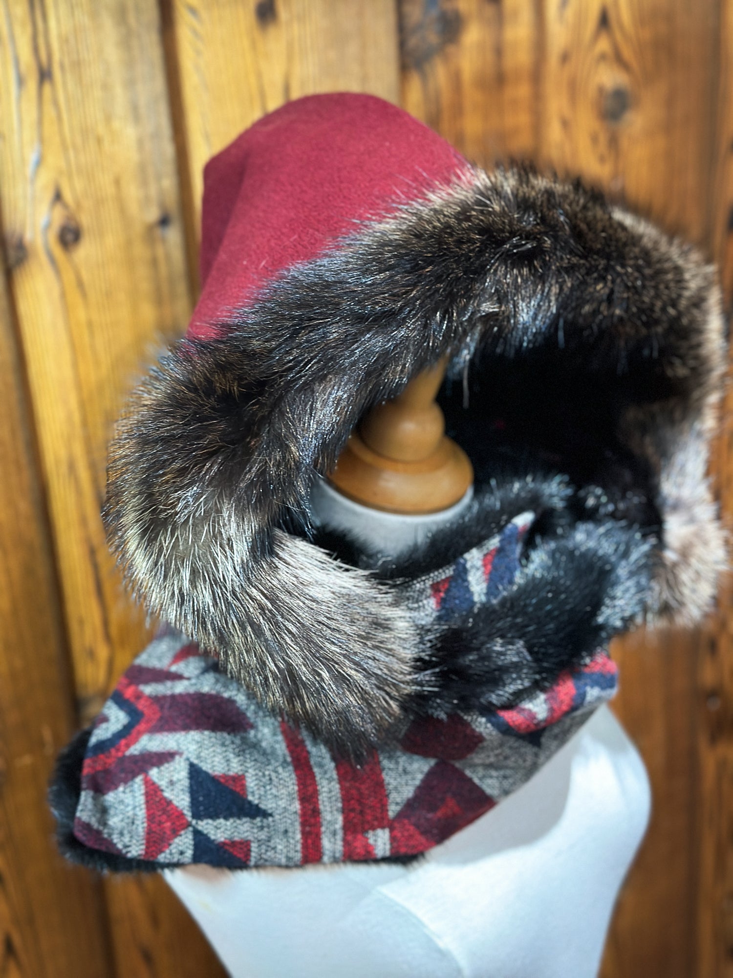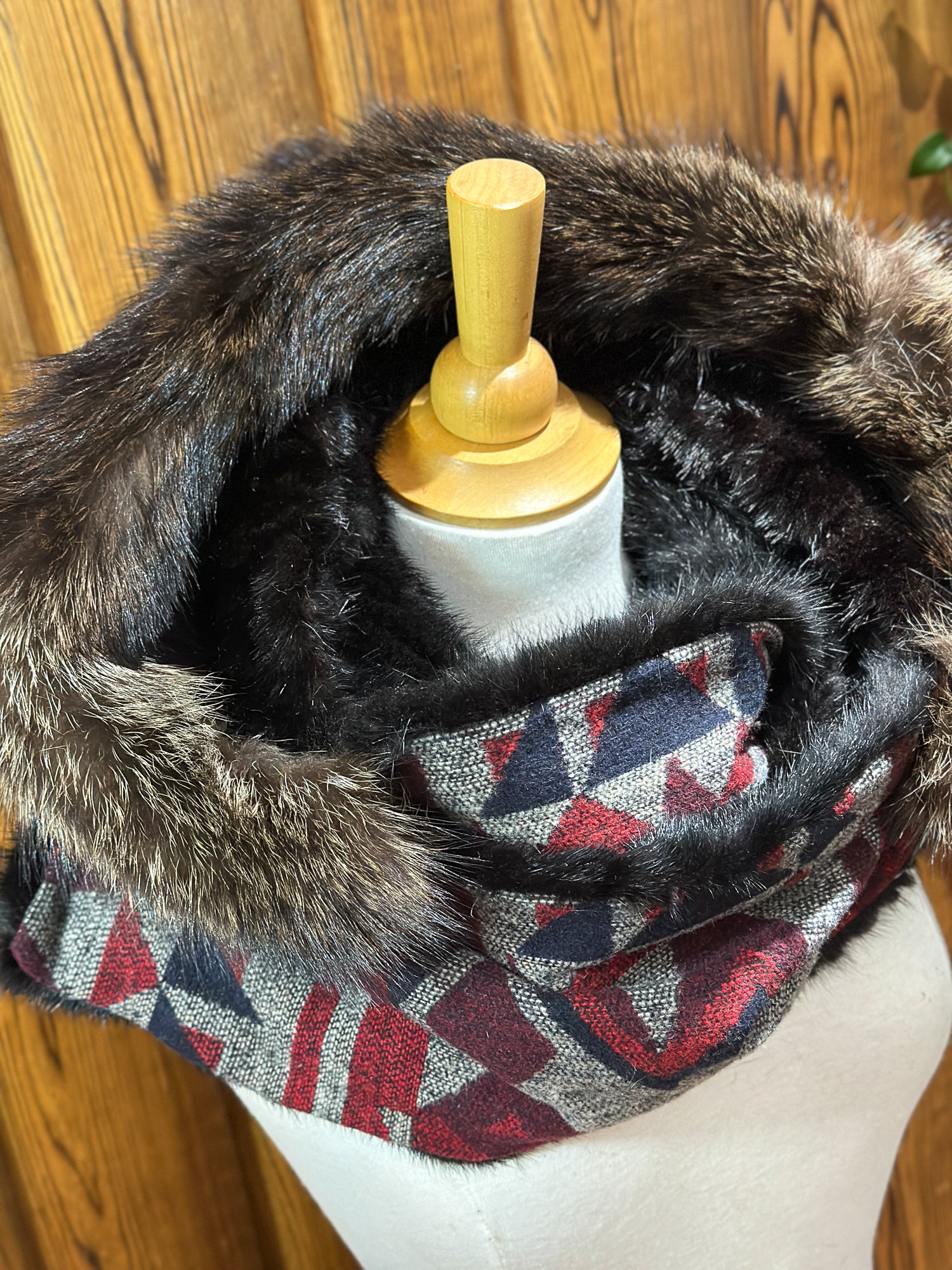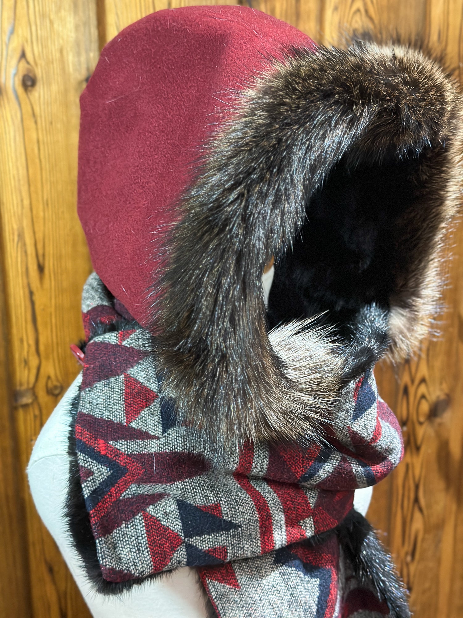 - Capuchon amovible : Vison noir et Chat Sauvage - Tissu: 100% laine récupéré