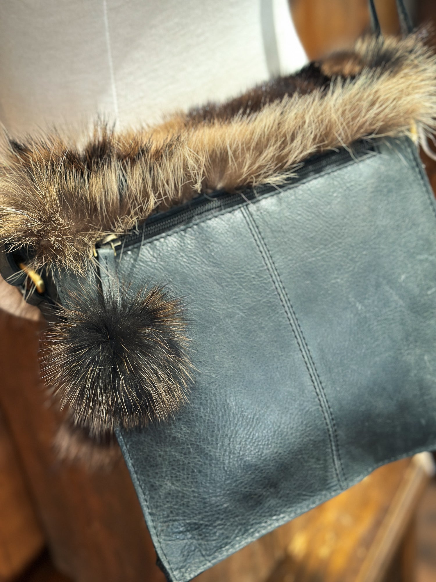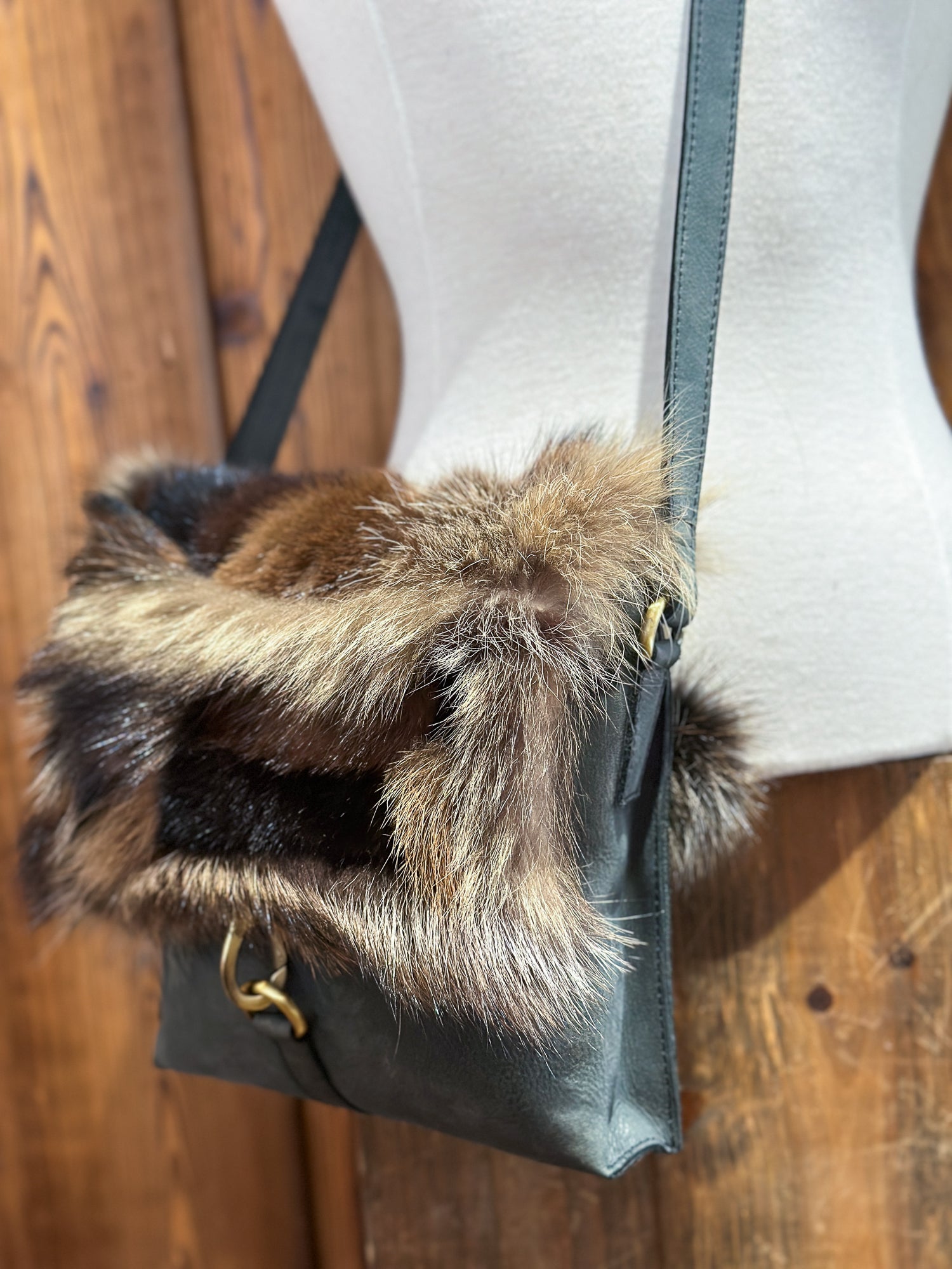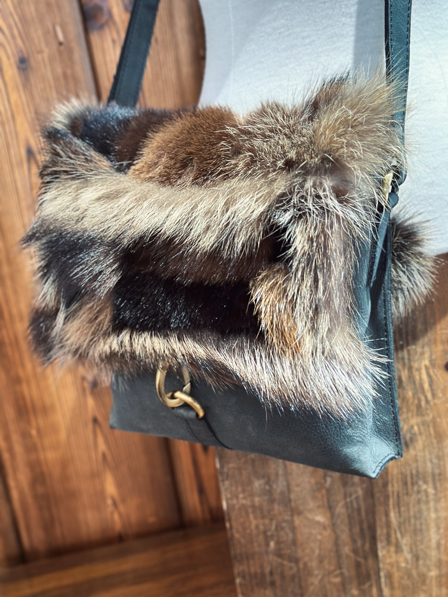 Un accessoire à la fois pratique et écologique. Le contraste entre le cuir et la fourrure recyclée crée un look sophistiqué, tendance et surtout une pièce durable.