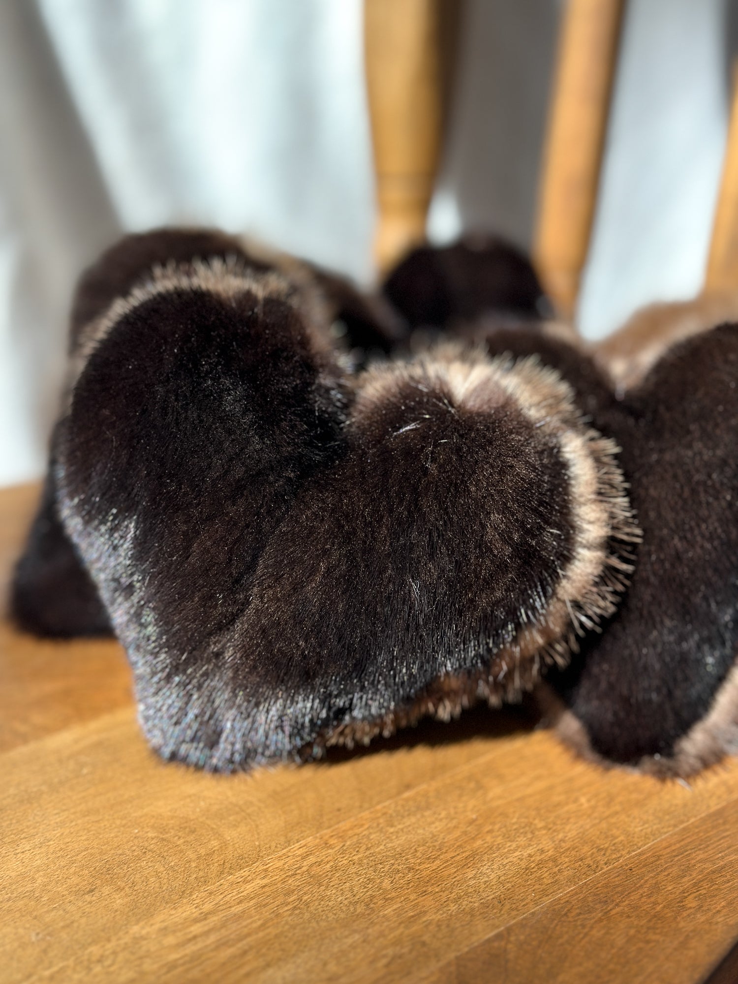 Fabriqué avec de la fourrure recyclée, il est disponible en deux modèles : réversible avec deux types de fourrure ou uni.