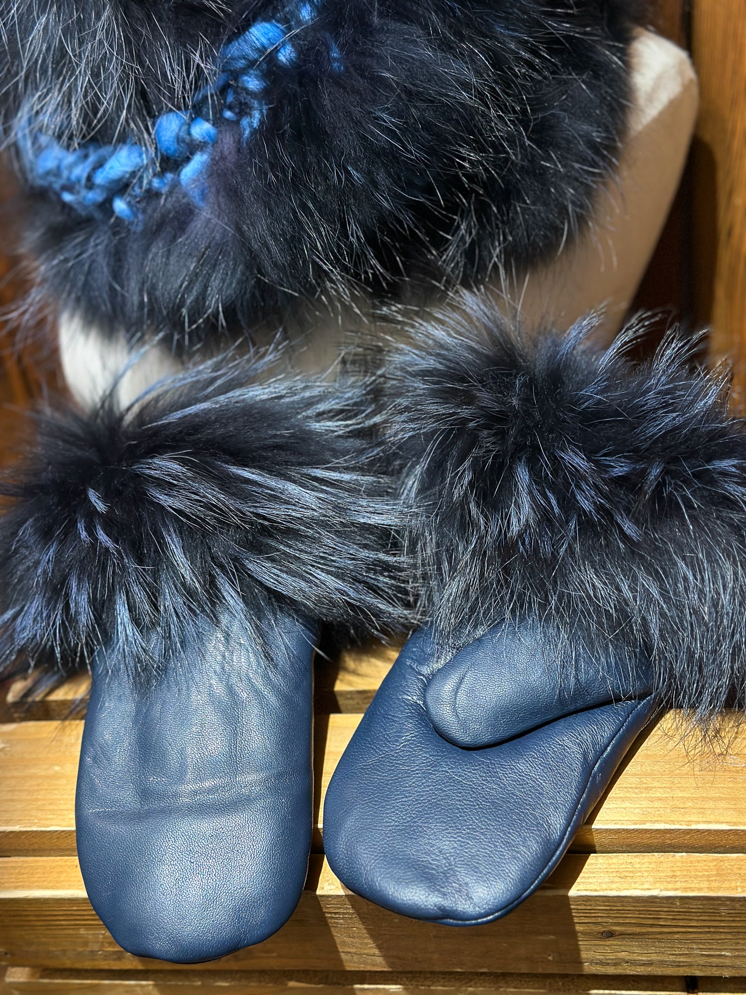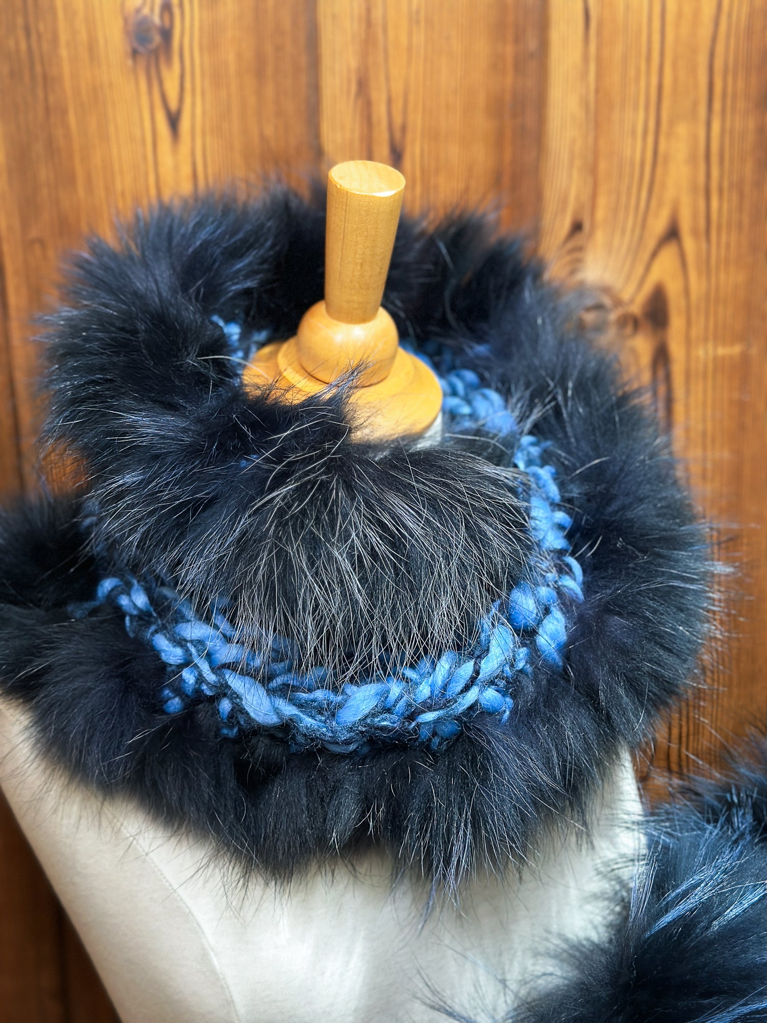Ensemble Foulard et Mitaines Bleu avec fourrure recyclée - Renard