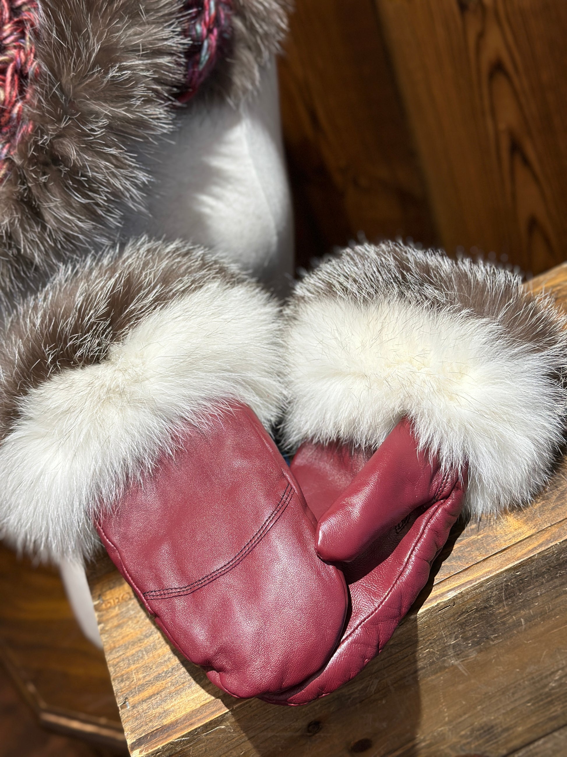 Ensemble Foulard et mitaines Rose avec fourrure recyclée - Renard