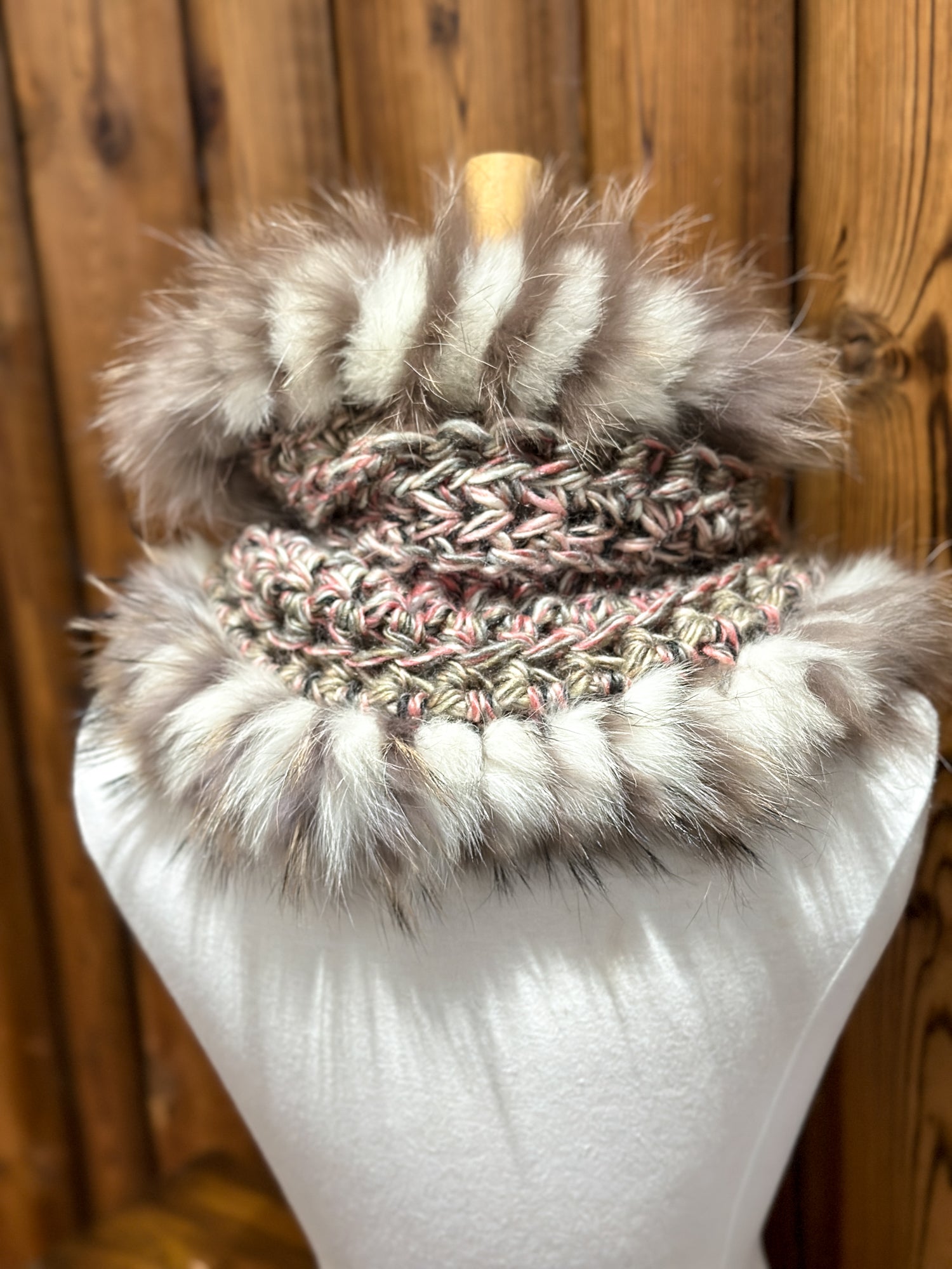 Foulard Rose et Gris avec fourrure recyclée - Renard