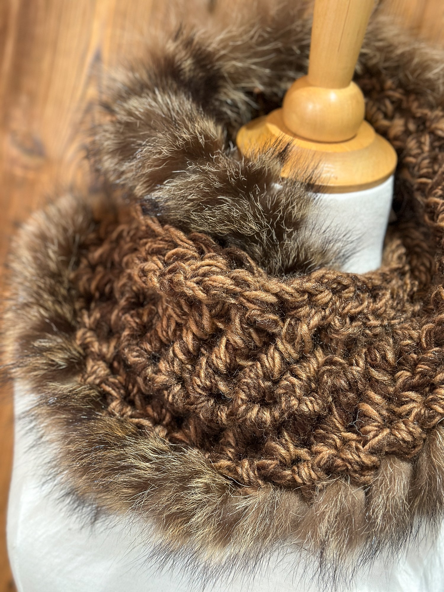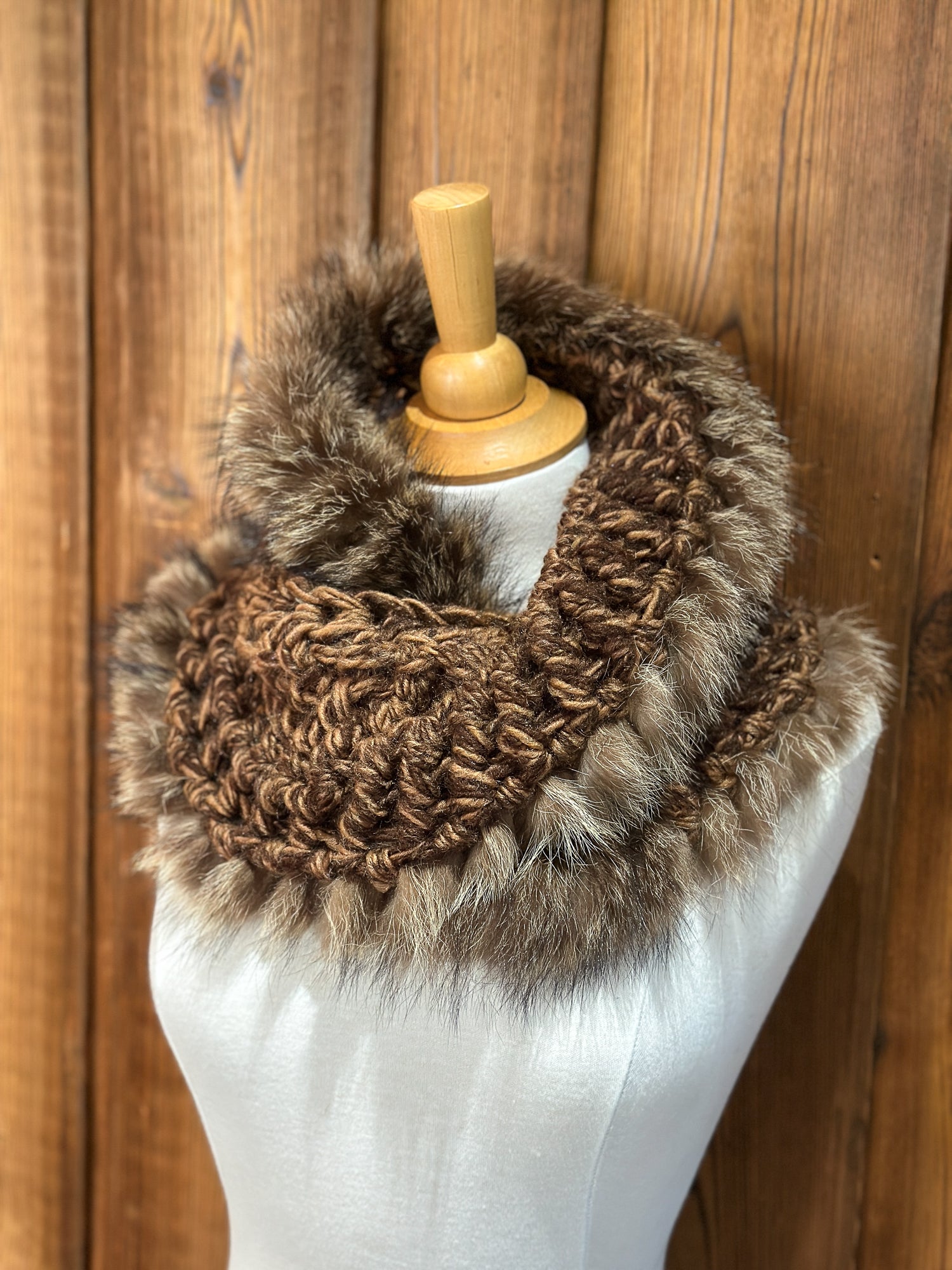 La torsade donne du volume au col tout en conservant de l'aisance au niveau du cou. En prime si vous avez oublié votre tuque vous pourrez le relever pour cacher vos oreilles.