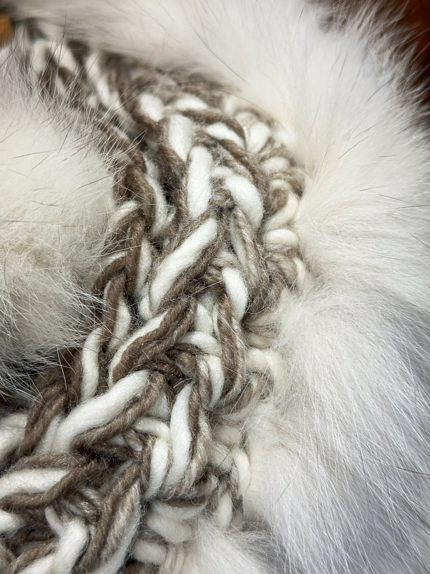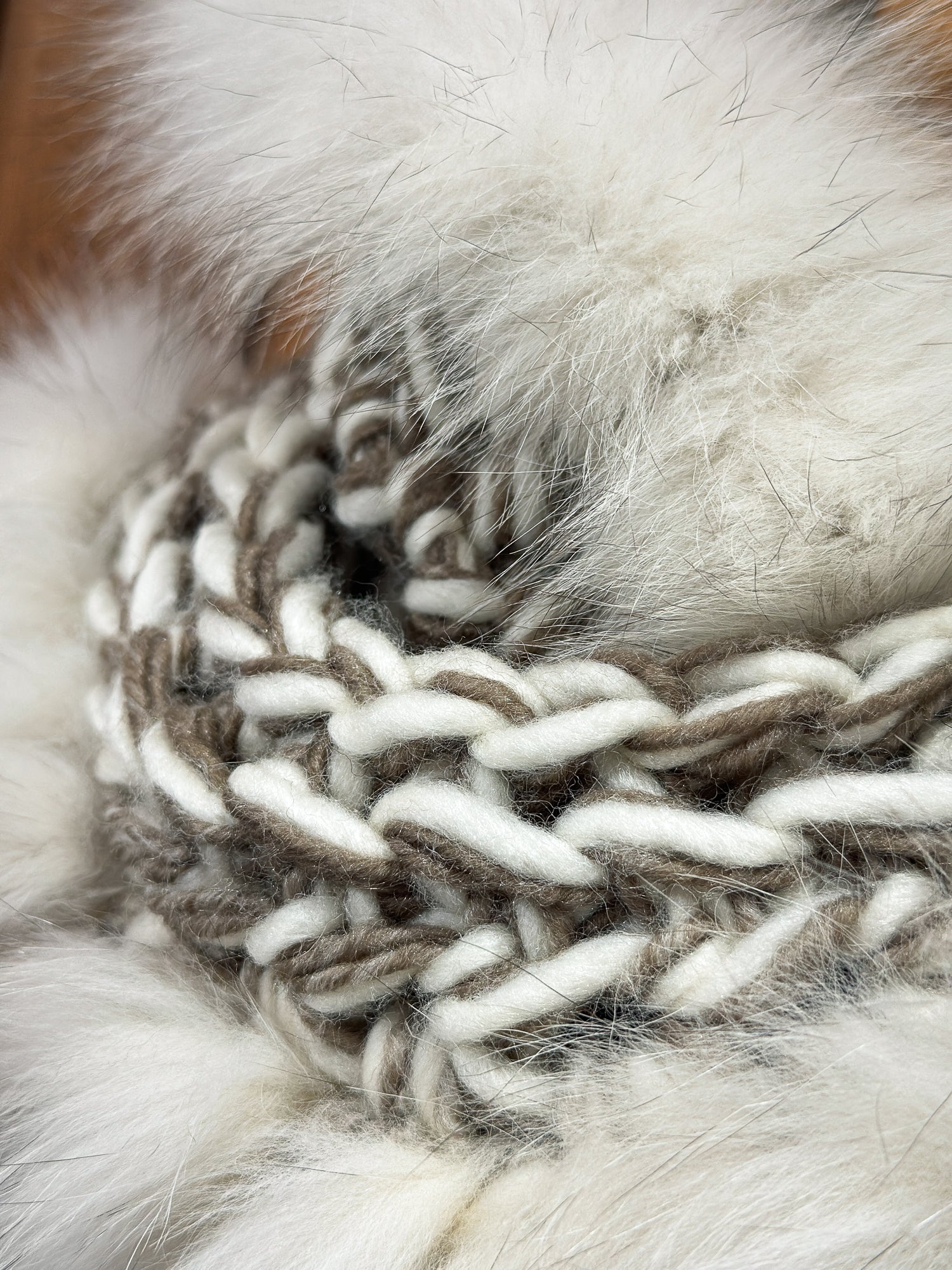 Foulard beige et taupe avec fourrure recyclée - Renard