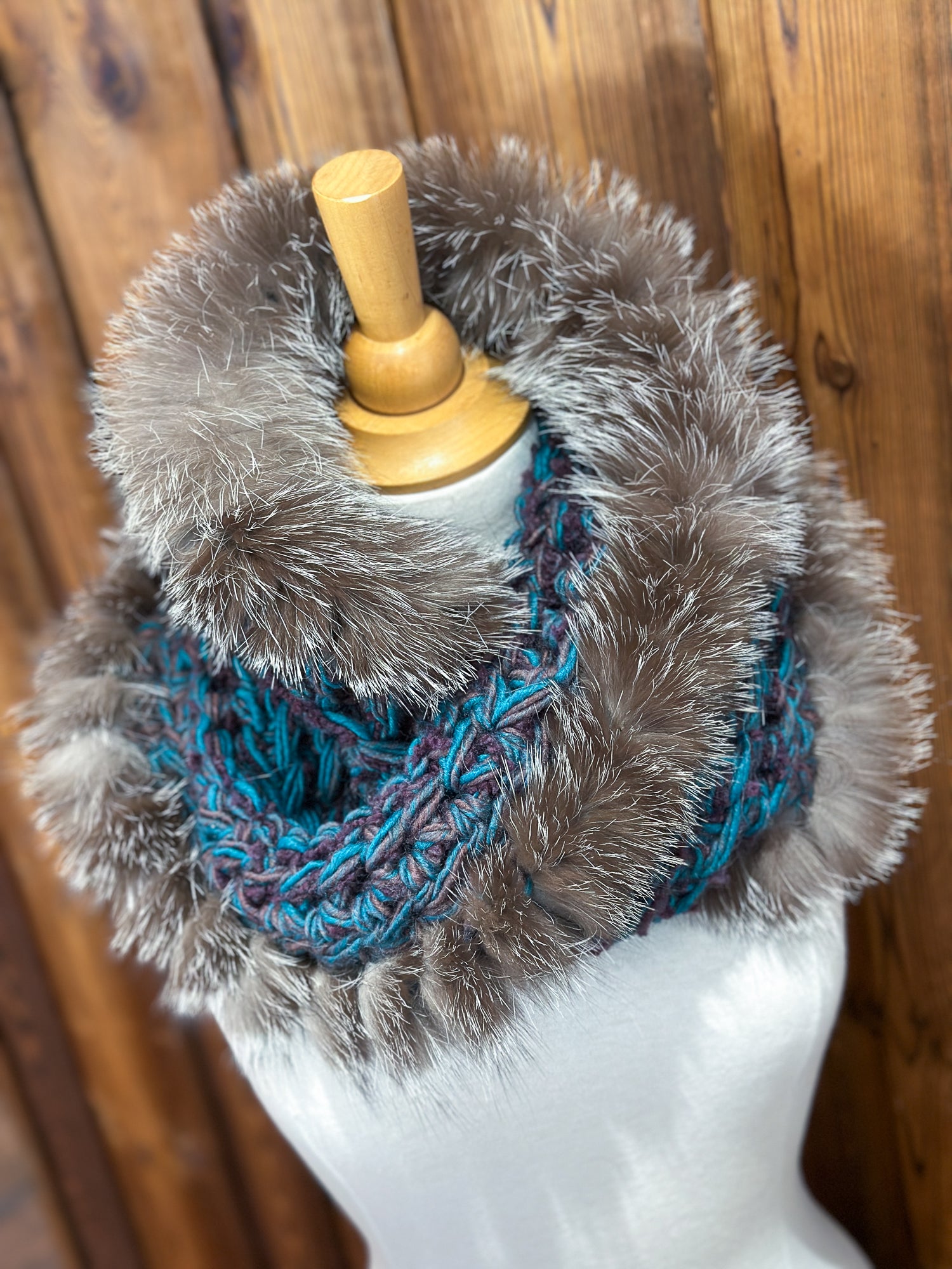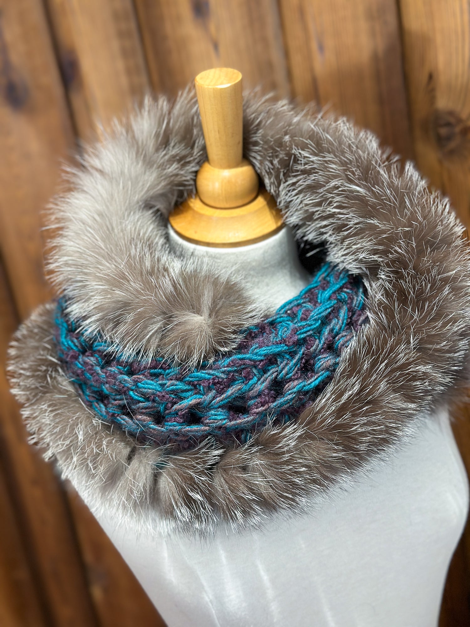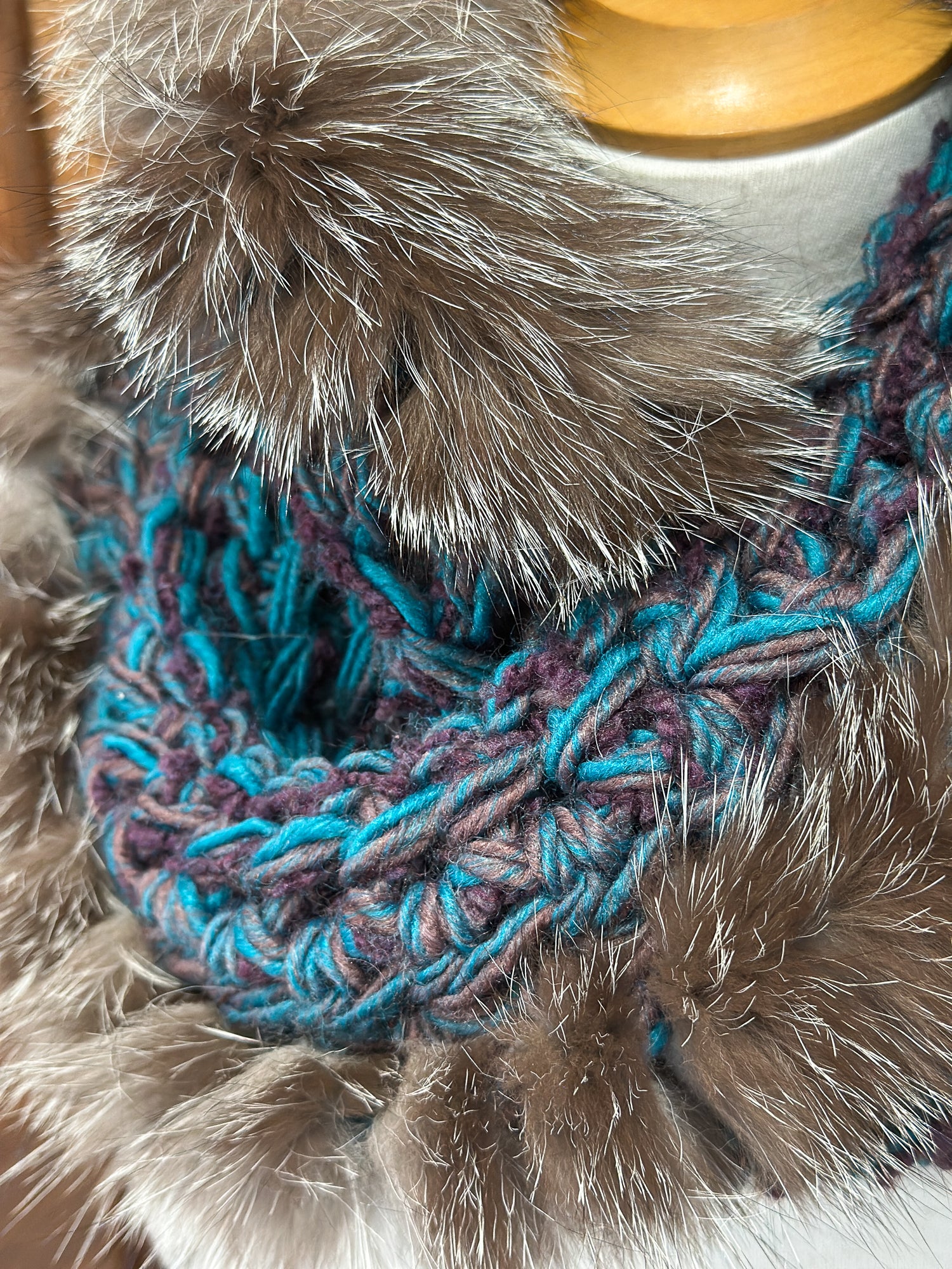Foulard Turquoise avec fourrure recyclée - Renard