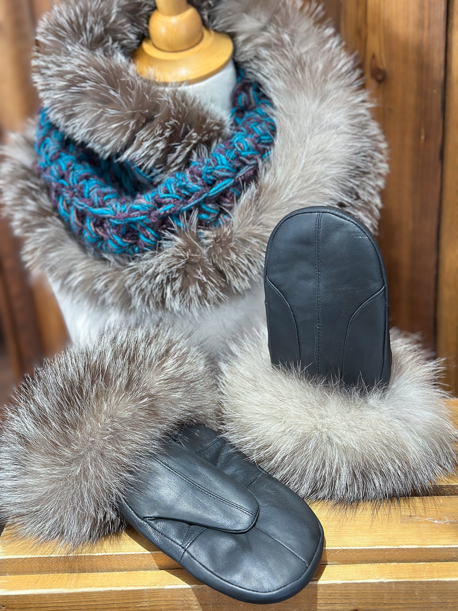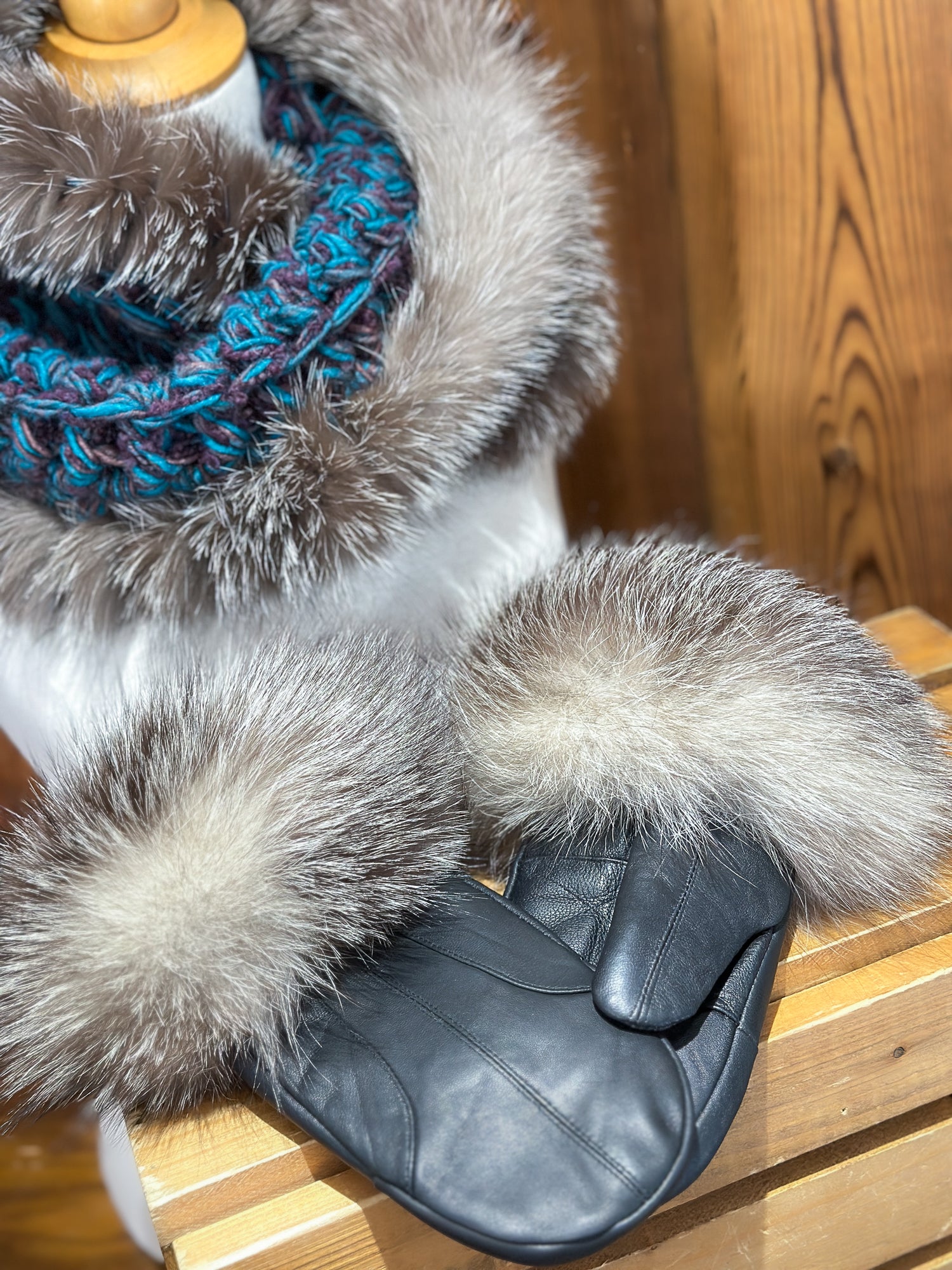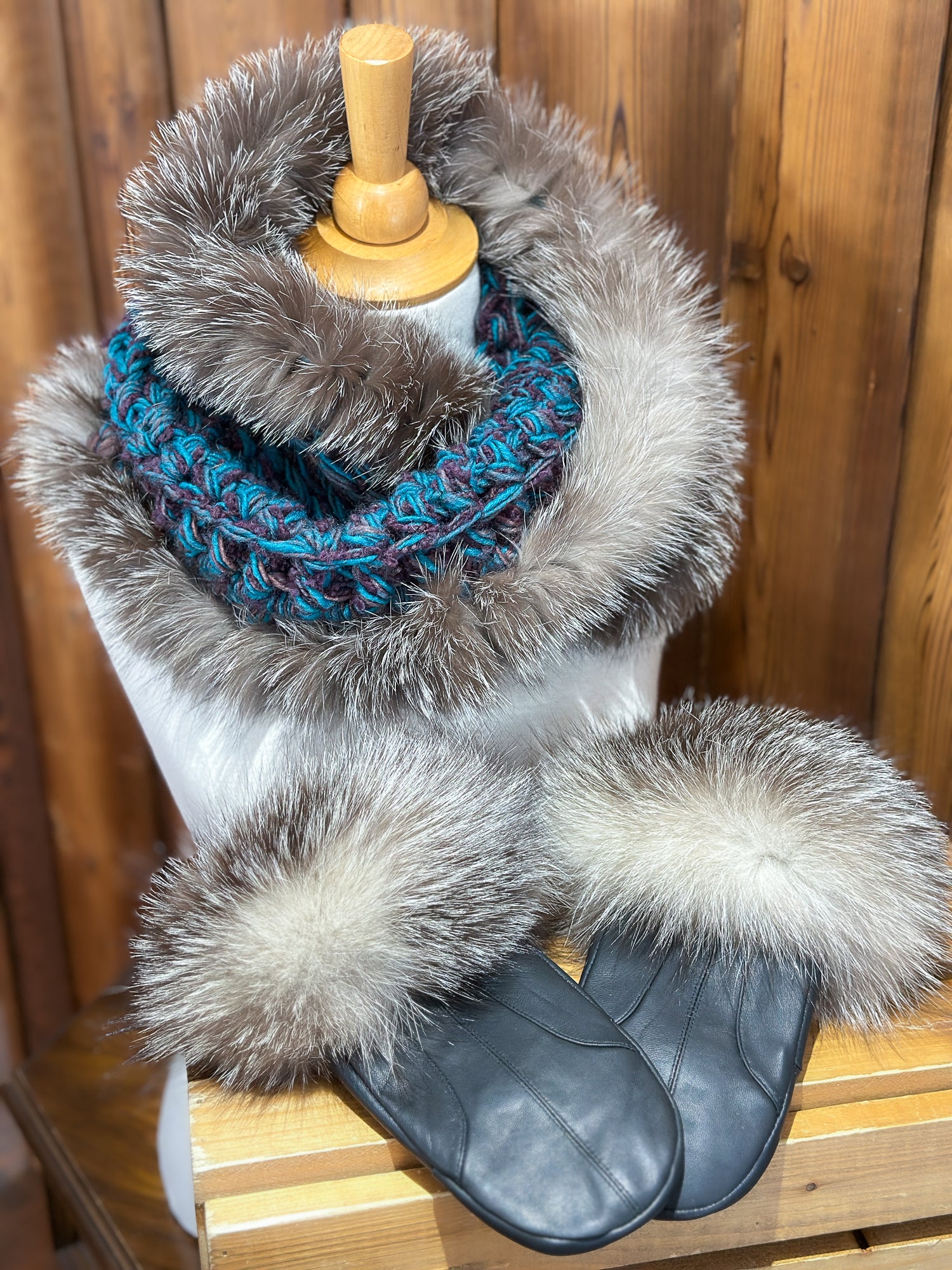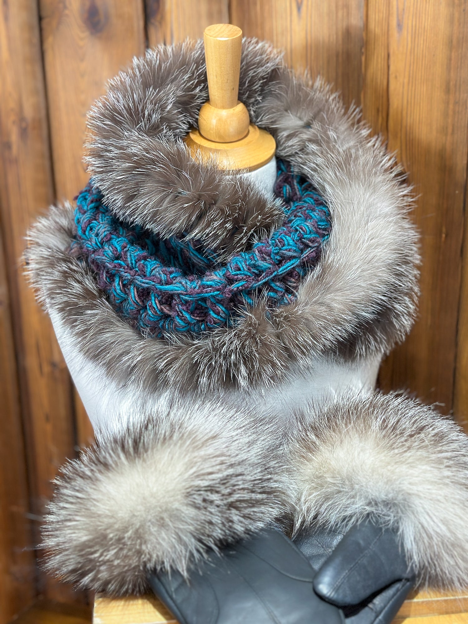 Foulard Turquoise avec fourrure recyclée - Renard