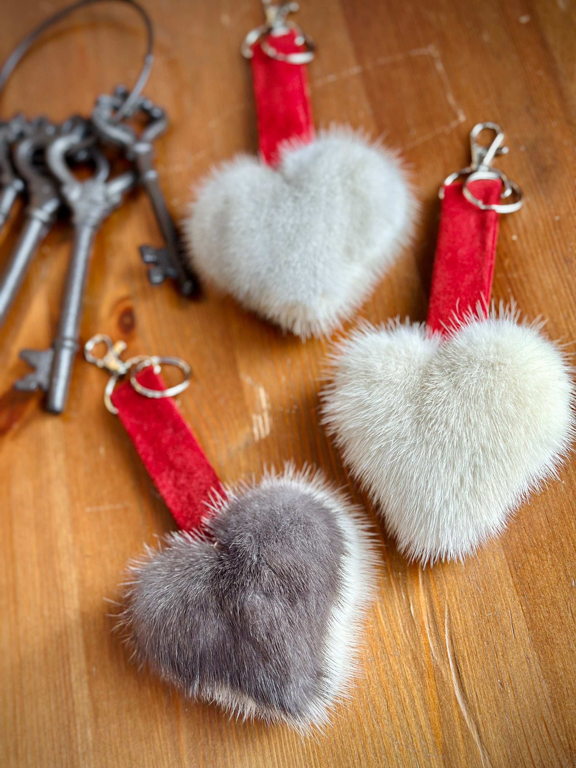 Porte clés en fourrure recyclée « p’tit coeur » Réversible
