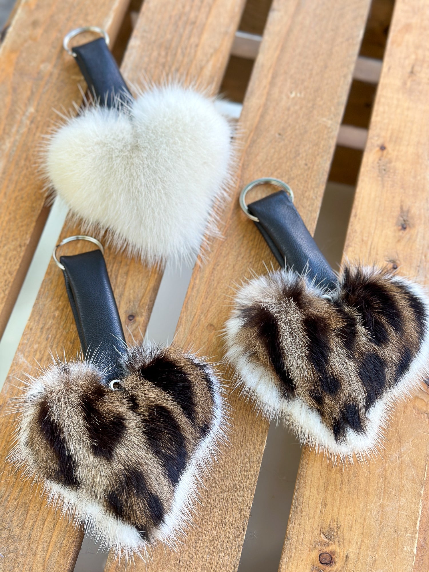 Porte clés en fourrure recyclée « p’tit coeur » Réversible