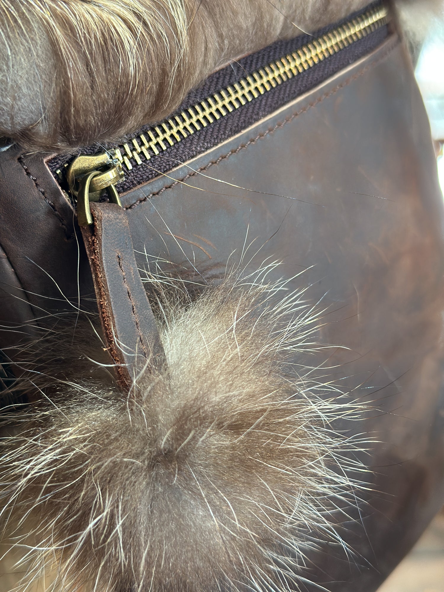 Un accessoire à la fois pratique et écologique. Le contraste entre le cuir et la fourrure recyclée crée un look sophistiqué, tendance et surtout une pièce durable.